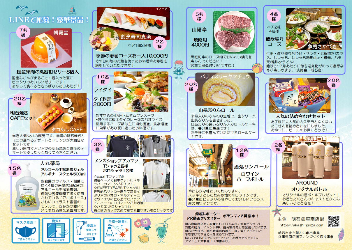 明石銀座商店街に来て、 LINE登録をされた方、新規でされる方は今回の各種イベントに参加できます。